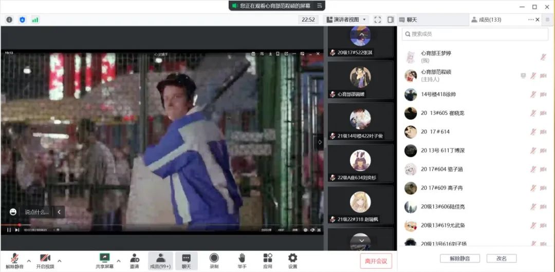 10月4日晚,九色视频在线上举办心理电影《心灵捕手》的观看活动,各年级以宿舍为单位进行观看。影片讲述了主人公威尔(WillHunting)是一名麻省理工的清洁工,虽然他在数学方面有着过人天赋,却是个叛逆的问题少年。不过他在教授蓝勃、数学家桑恩和朋友查克的帮助下,最终打开心灵,消除了人际隔阂,并找回了自我和爱情的故事。