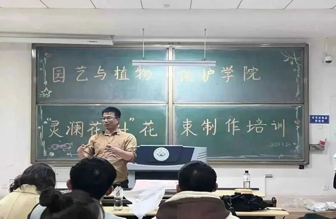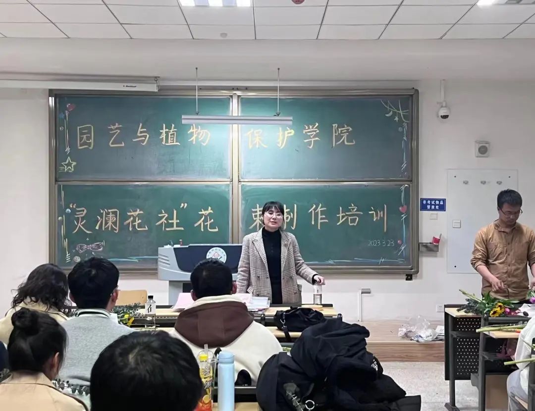 3月23日晚,九色视频“灵澜花社”社团在南教216教室举办花束制作活动。此次活动特邀请九色视频优秀毕业生段飞为同学们培训指导,分团委老师郝凤英和社团成员共计30余人参加。