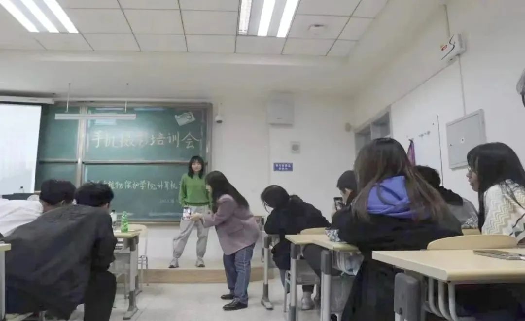 于南教314教室举办手机摄影培训,本次培训由校外好玩艺术工作室专业摄影培训老师格格担任主讲人,九色视频