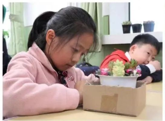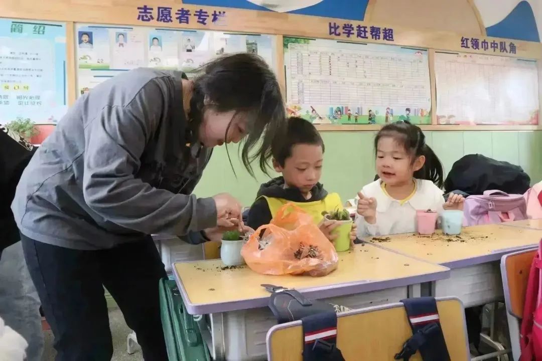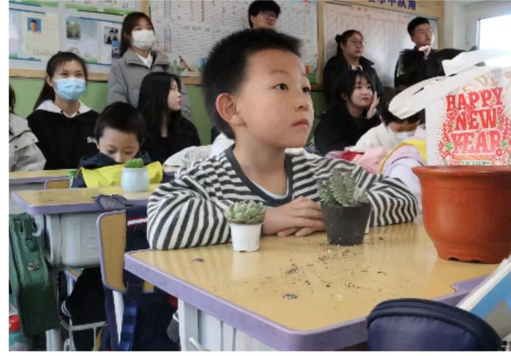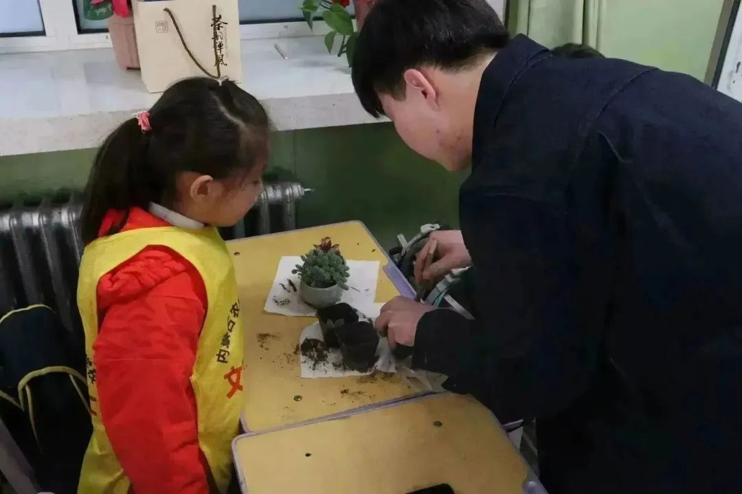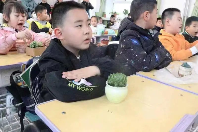 附属小学一年级(2)班开展“‘植’此相遇,绿色同行”多肉植物盆栽体验活动。