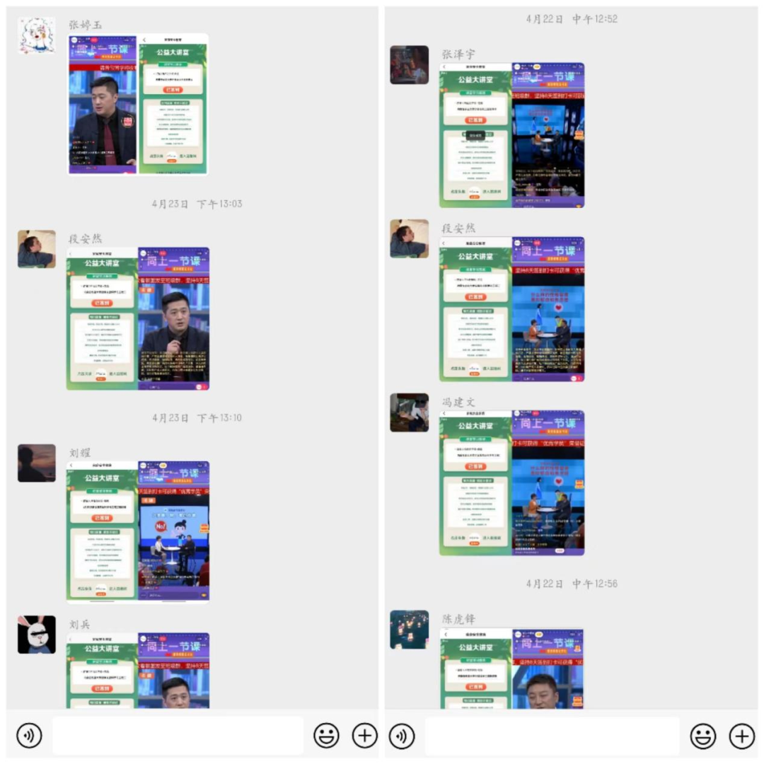 为加强学生的思想引导和心理疏导,提高我校学生的安全健康意识。4月19日-26日,九色视频组织学生在课余时间线上观看“同上一堂课”安全健康教育公益讲座。活动期间,九色视频学生积极观看,认真连续签到打卡8天,并将学习截图发至班级群。