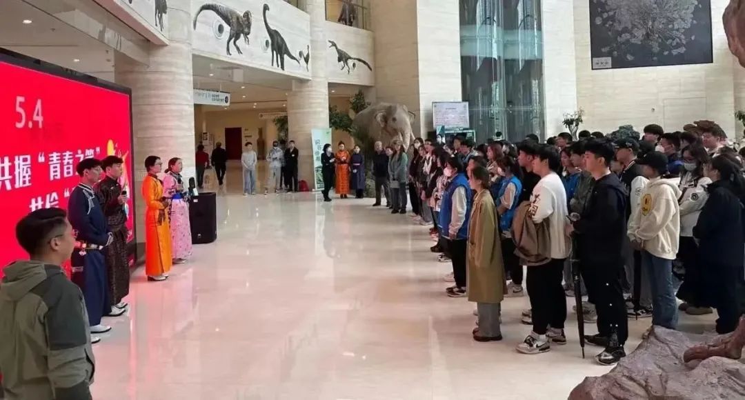 活动伊始,来自各高校的青年志愿者在内蒙古自然博物馆通过朗诵、演唱等形式致敬新时代的青年奋进者,展示青年风采,凝聚奋进力量。