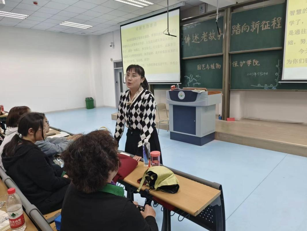 的三个专业进行讲解,以优秀校友事迹为例讲述了他们专业领域做出的突出贡献,增强了同学们对专业的认同感。最后,孙老师鼓励同学们刻苦钻研,发扬学农人吃苦耐劳的奋斗精神,坚定强农兴农使命,扎根农田,用脚丈量土地,用科学技术种植作物。
