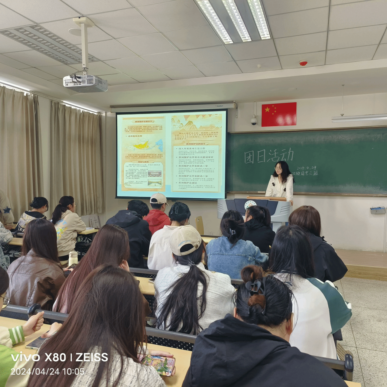 4月24日上午,22级园艺三班在南教206教室开展“大河九曲,青春添彩”主题团日活动,本次活动由团支书马静和组宣委员张越宁共同组织召开,班级25名同学按时参加,班主任段文昌出席。