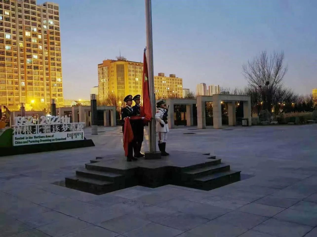 七点整,国旗护卫队的同学们迈着铿锵有力的步伐护送国旗走向升旗台。鲜艳夺目的五星红旗伴随着庄严肃穆的国歌冉冉升起,同学们表情肃穆向国旗行注目礼,振奋人心的国歌驱散了冬日清晨的寒冷,使同学们心中的爱国情怀越发浓郁。