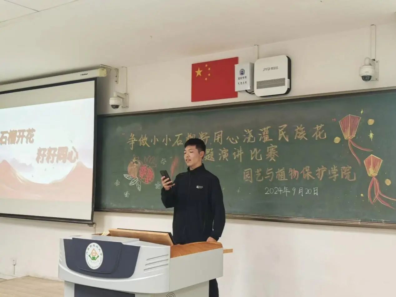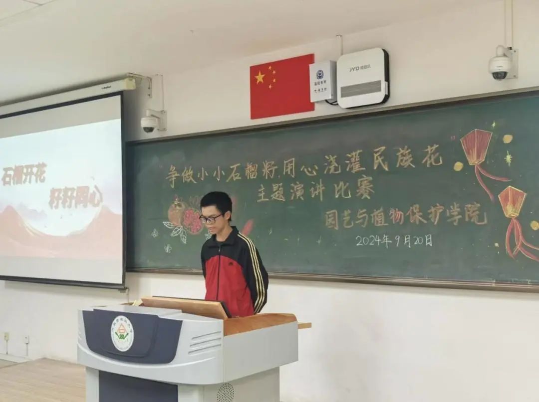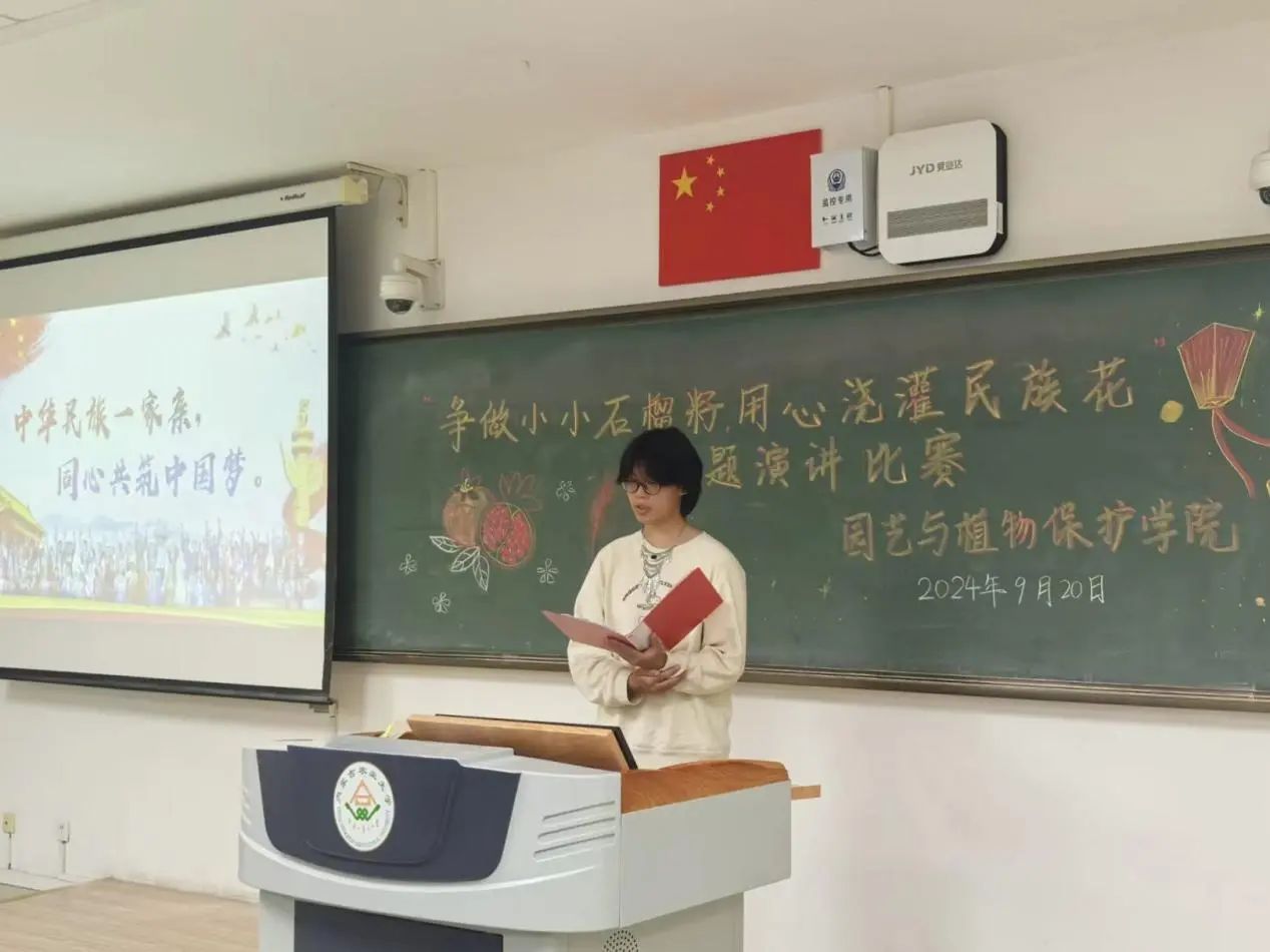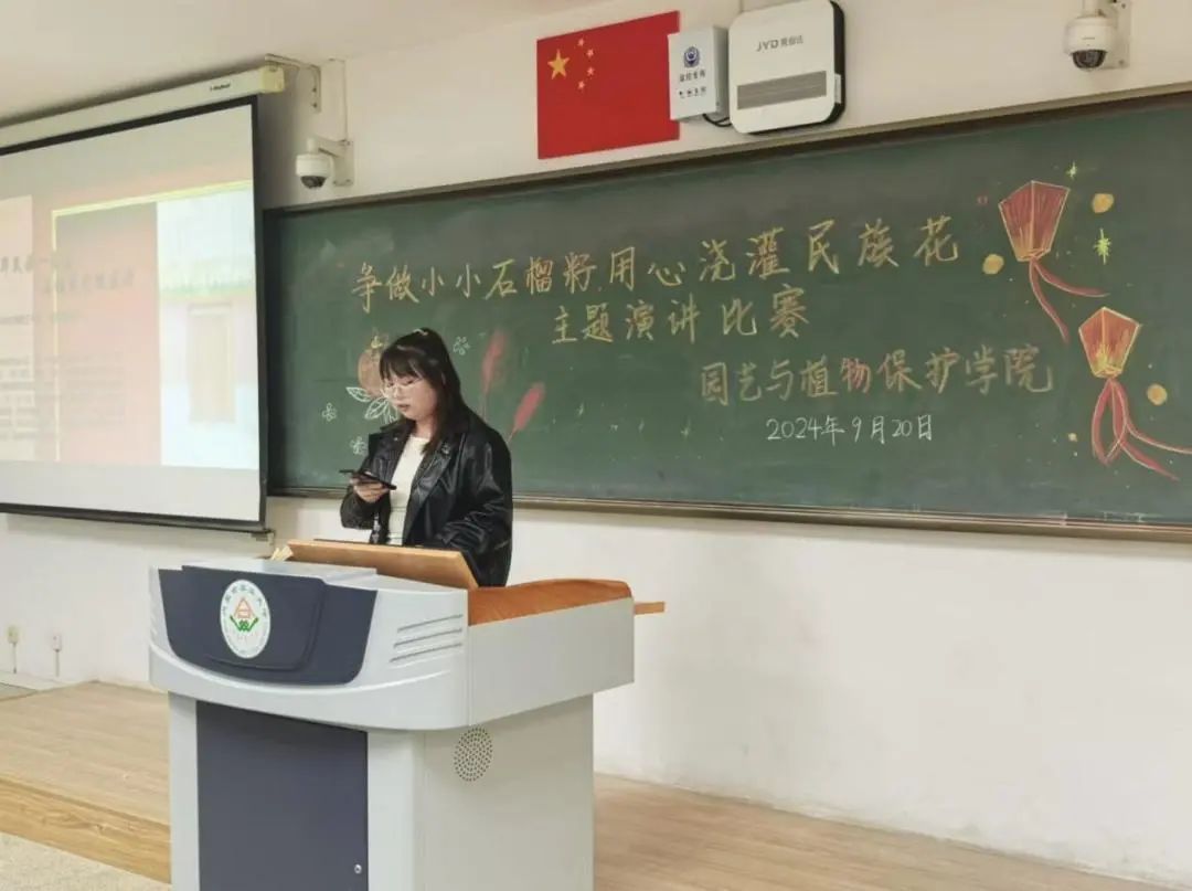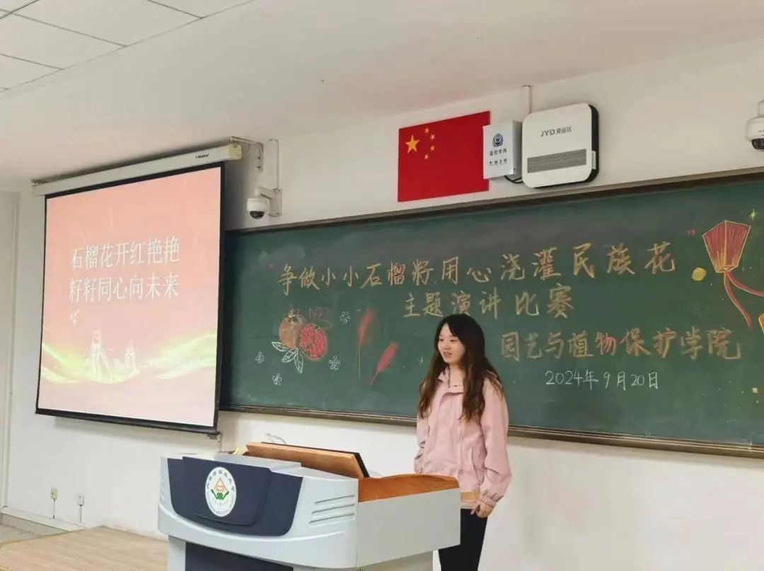 于南教222教室举办“争做小小‘石榴籽’,用心浇灌‘民族花’”主题演讲比赛。本次演讲参赛小组共10组。团委老师郝凤英和第七届分团委学生会主席、部长担任评委,女权部部长张司卓担任比赛主持人。