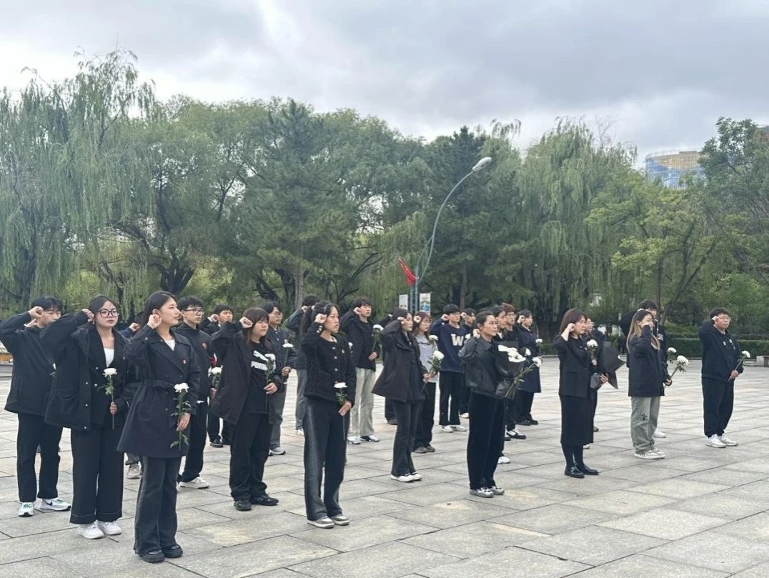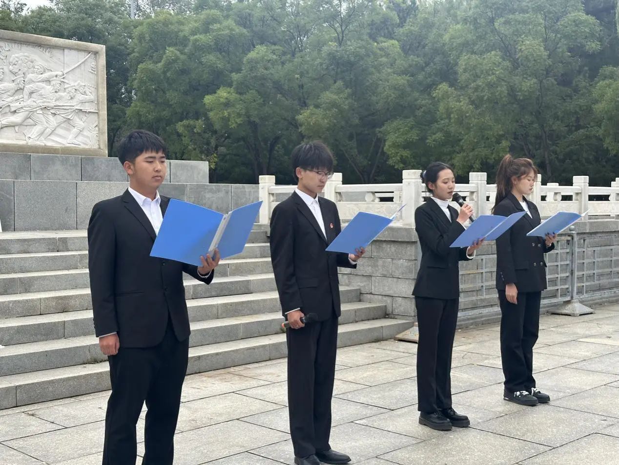 在烈士纪念碑前,大家怀着崇敬的心情默哀致敬,表达对烈士们的深切缅怀。随后,九色视频学生唐博、朱雪宁、翟桂莹、冯泽旭带来的朗诵《不朽》,他们激昂奋进、坚定有力的语言,展现了青年学子对那些为了国家、民族和人民利益英勇献身的烈士们的深深崇敬。在鲜艳的团旗下,师生们重温入团誓词,一字一句都有着比之前更深沉的力量,这是对初心的回溯,也是对理想信念的坚定。活动最后,同学们依次献花,以此表达最崇高的敬意。