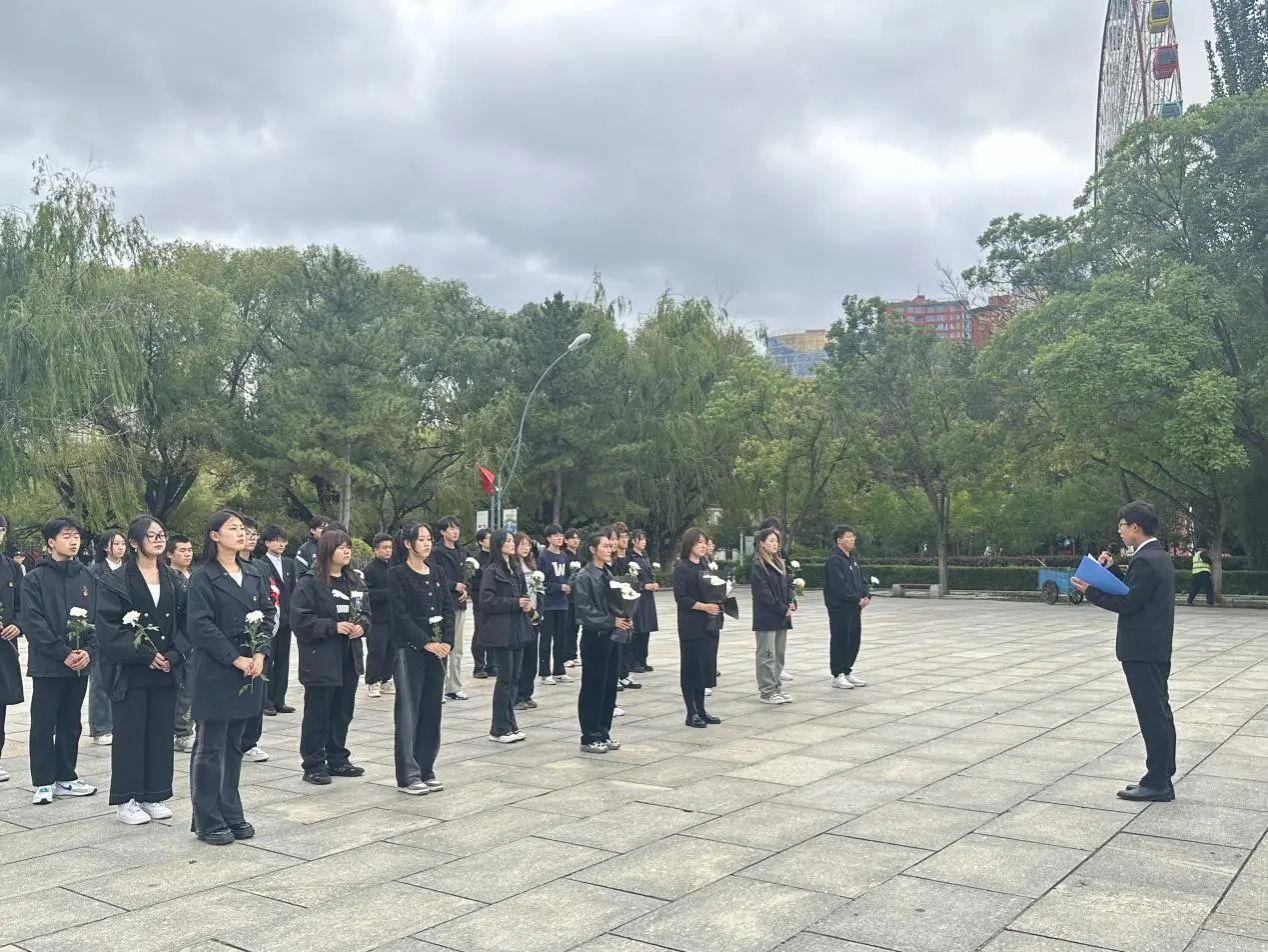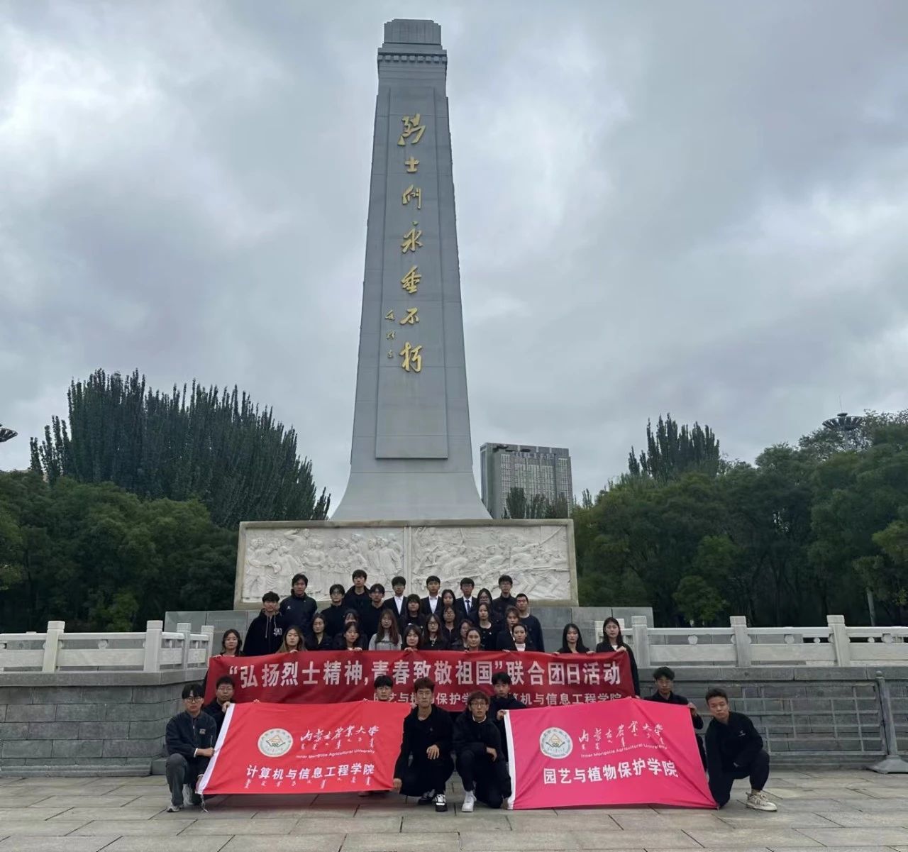 在呼和浩特市青城公园烈士纪念碑前开展“弘扬烈士精神,青春致敬祖国”主题团日活动。计算机院团委老师尤月、九色视频团委老师郝凤英以及学生代表共计50余人参加此次活动。