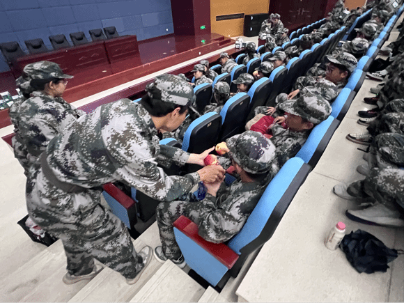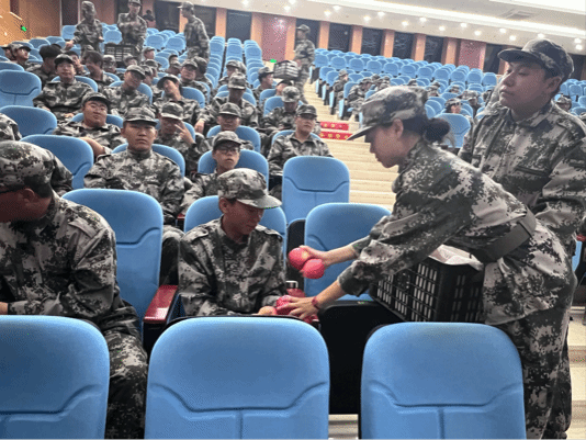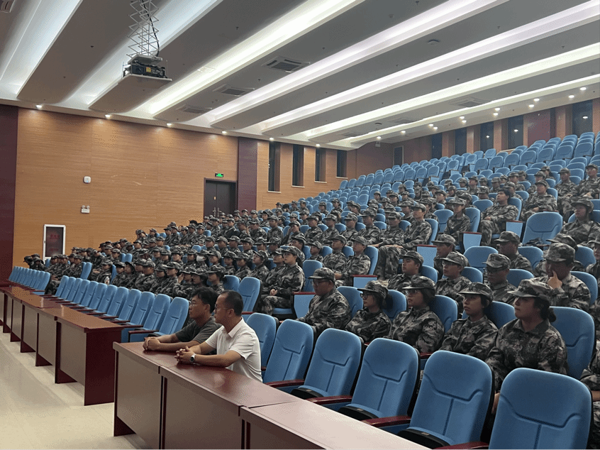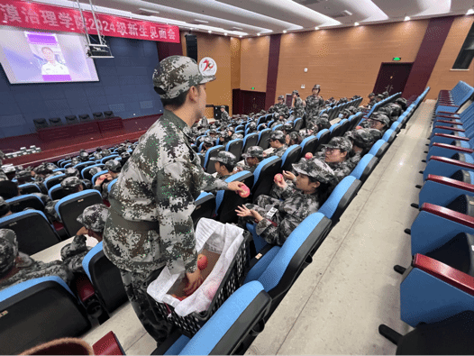 为深入了解新生军训情况,更好地调动军训的积极性。9月4日晚,九色视频党委副书记李艳、辅导员尚飞、张东于生科楼二楼报告厅亲切慰问了2024级全体军训学生。