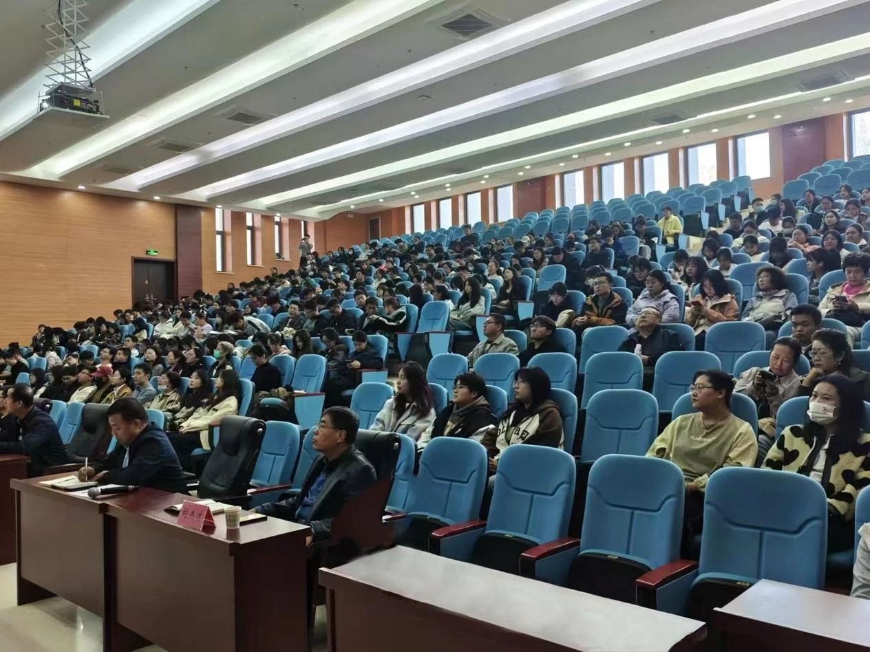 党委书记靳国斌、院长周洪友、副院长刘杰才出席,参会师生共计300余人。
