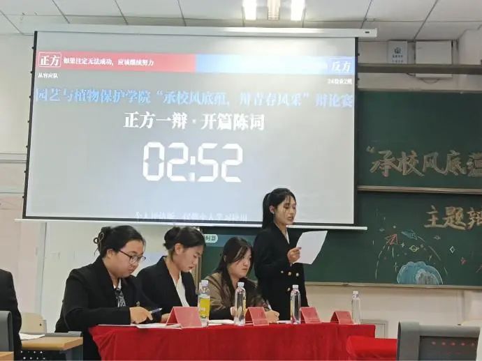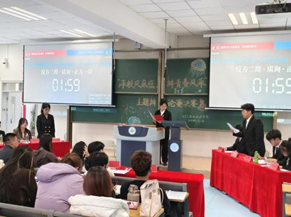 主持人简述比赛规则,双方辩手做过自我介绍后,比赛正式开始。