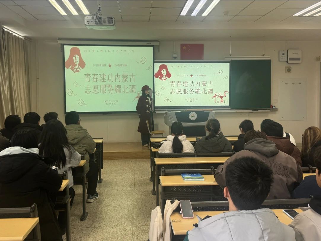 号召,呼吁同学们志愿深入内蒙古,参与生态保护、文化传承、社区服务等志愿工作,助力北疆发展。24级园艺三班于3月5日开展了“青春建功内蒙古,志愿服务耀北疆”主题团日活动暨团员民主评议活动,旨在通过实际行动,展现青春力量,弘扬奉献精神。