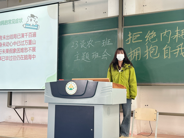 此次“拒绝内耗,拥抱自我”主题班会,为23级设农一班的同学们搭建了一个分享、交流和成长的平台。相信在未来的日子里,同学们将带着从班会中汲取的力量,告别内耗,以更加自信、阳光的姿态迎接大学生活的每一天,在青春的舞台上绽放属于自己的光彩。