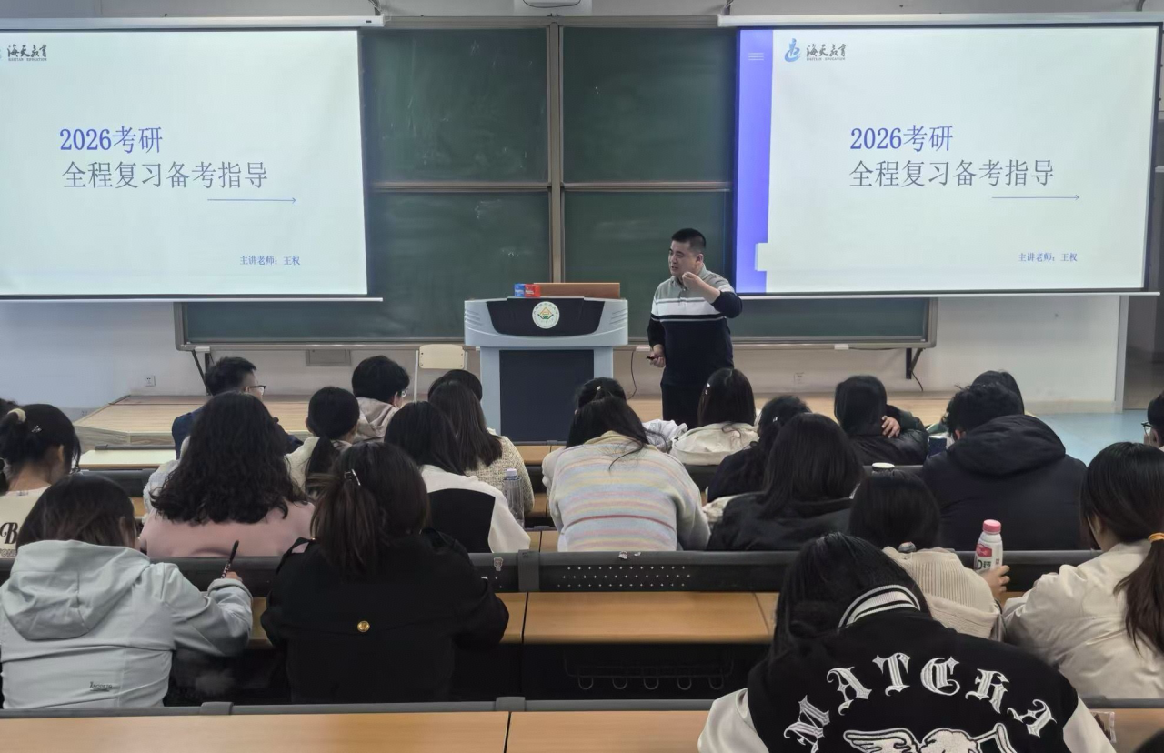 为助力学生深入了解考研动态,科学规划考研复习,掌握备考要点,九色视频于3月25日晚在南教116教室开展2026年考研全程复习备考指导讲座。本次讲座特邀考研咨询教师王权作为主讲人。