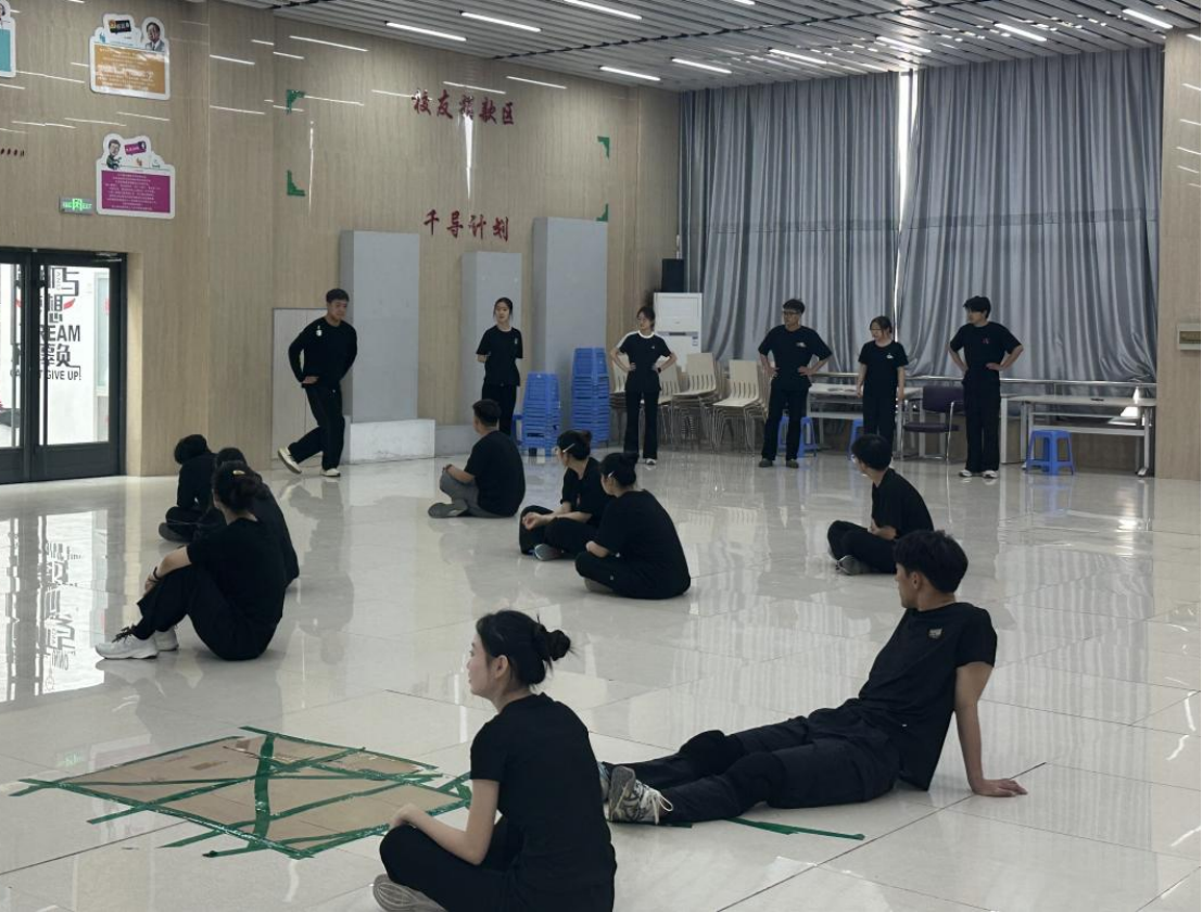 排练现场,参演人员精神饱满,全情投入排练,用灵动的舞姿、专注的神情展现着青春的活力与风采,诠释出对舞台的热爱,展现出九色视频学子昂扬向上的精神风貌。
