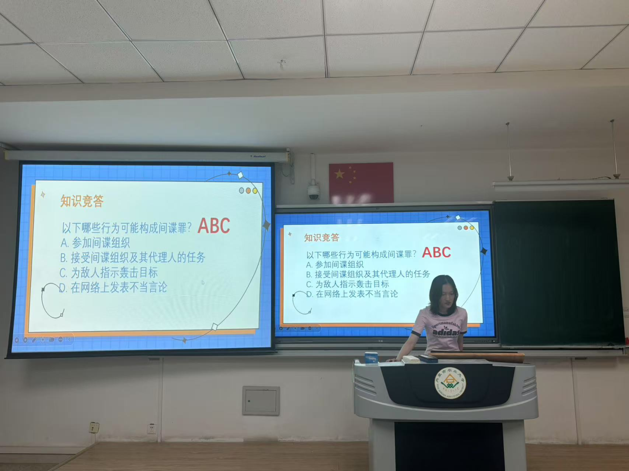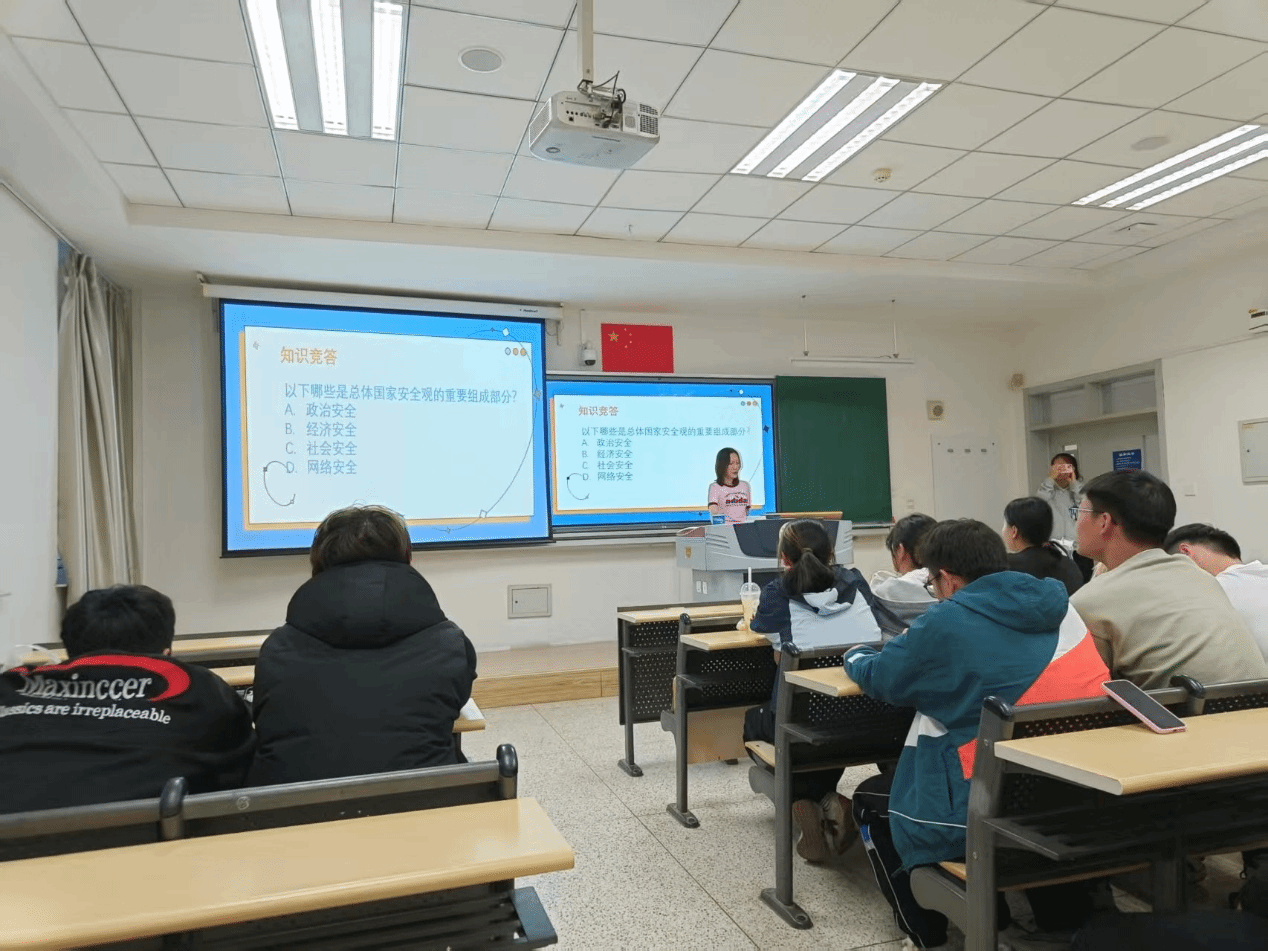 知识竞答环节是本次团日活动的一大亮点。团支书围绕国家安全法、反间谍法、网络安全法等法律法规,设计了单选题、多选题、判断题等形式多样的竞答题。同学们积极参与,踊跃抢答,现场气氛热烈。通过知识竞答,同学们不仅巩固了国家安全知识,还提升了对安全风险的洞察力和应对能力。