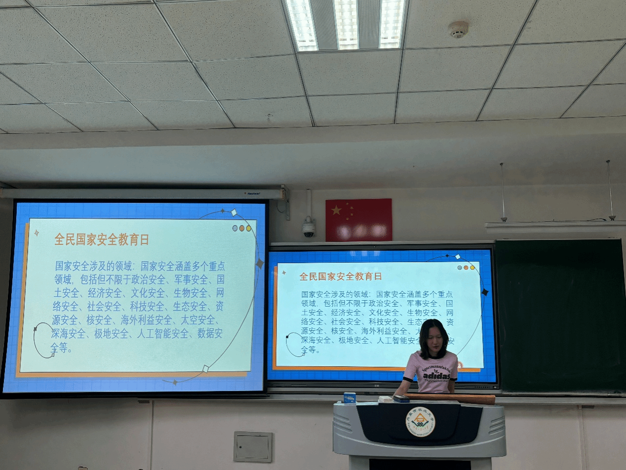 活动伊始,团支书通过PPT的形式,为同学们全面介绍了全民国家教育日、国家安全的定义、总体国家安全观包含的16个领域,如政治安全、军事安全、网络安全、生物安全等,并结合身边案例,深入分析了当前国家安全形势,引导青年学生深刻认识国家安全的重要性,以实际行动维护国家安全,筑牢青春防线。