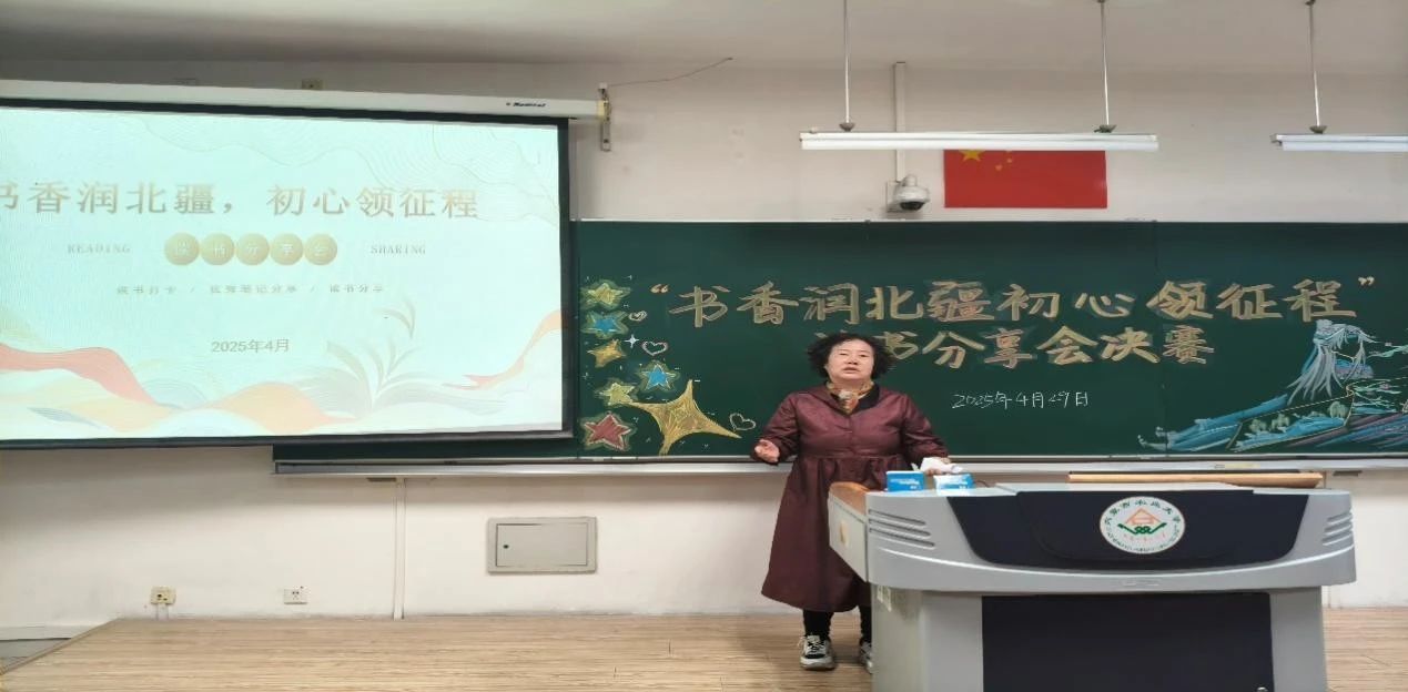 校关工委副主任孙伯筠为读书分享会进行点评。她对每一位参赛选手的分享都给予了充分肯定与赞扬。她提到这场分享会不仅是文字的碰撞,更是精神的燎原。每一本书都是北疆大地的血脉,每一位青年都是文化薪火的传人。