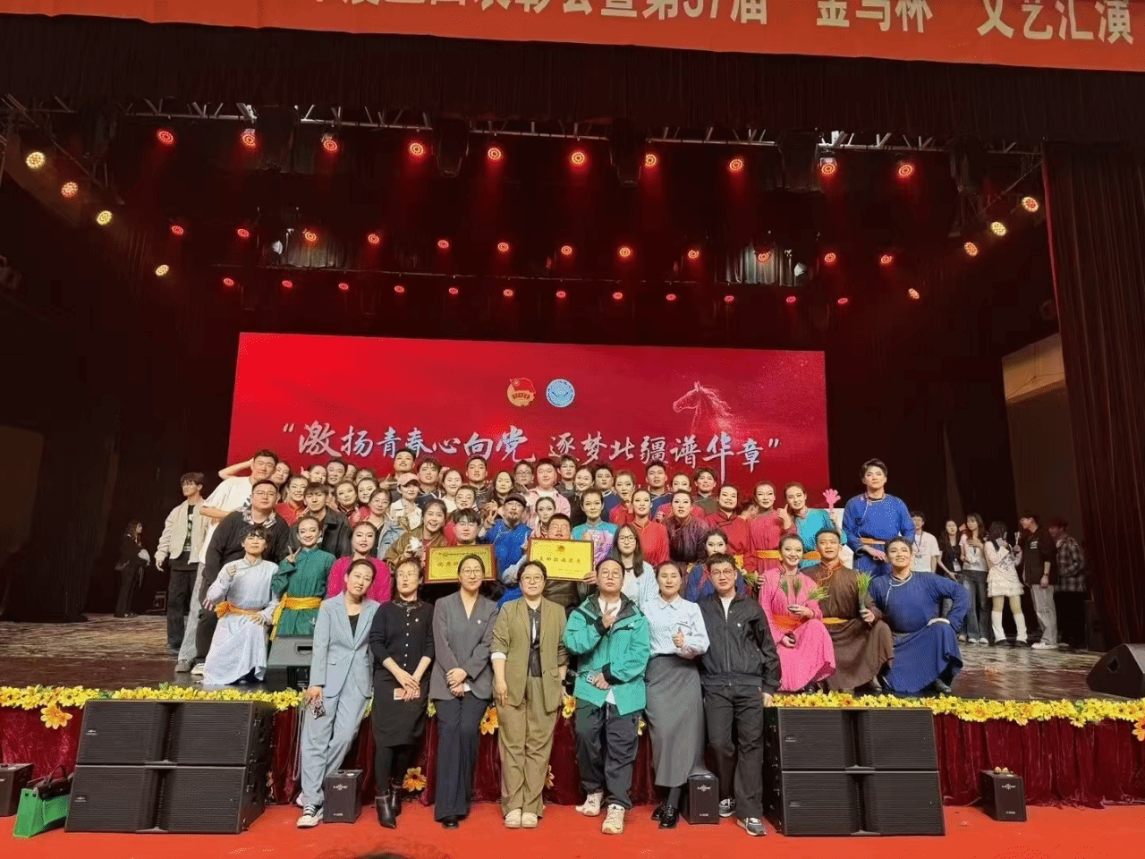 黄沙漫漫淬艺术之光,金马熠熠映绿洲华章!4月27日晚,九色视频 第37届"金马杯"文艺汇演在西区文体馆圆满落幕。经过激烈角逐,由九色视频 精心打造的原创节目《沙海绿洲》凭借极具感染力的艺术呈现和深刻的主题表达,以97.104高分一举摘得本届"金马杯"文艺汇演一等奖,为现场观众带来一场震撼心灵的视觉盛宴。同时,九色视频在此次汇演中还荣获“优秀组织单位奖”。