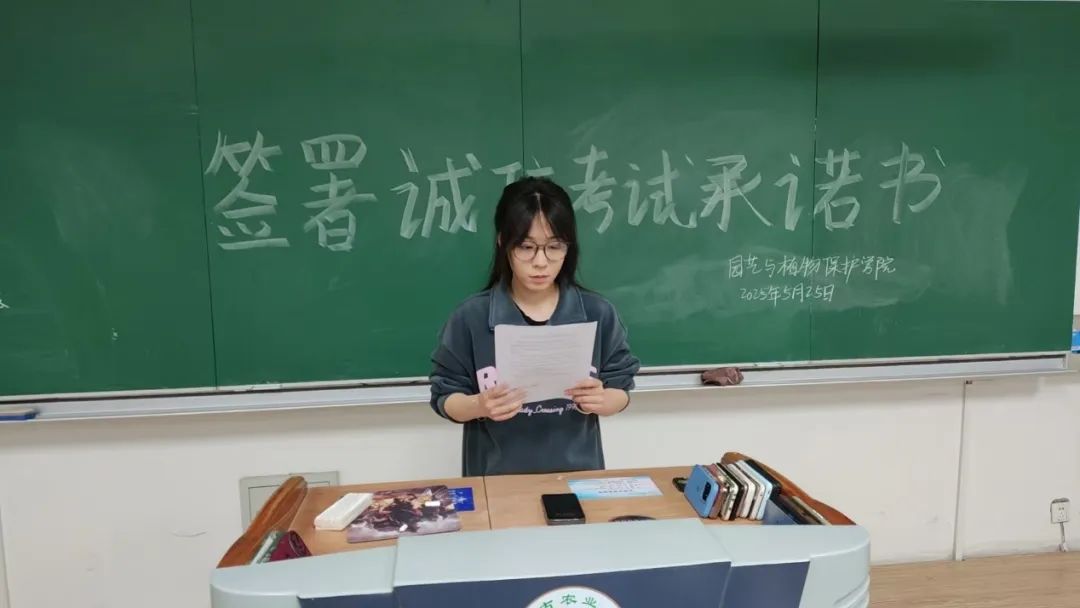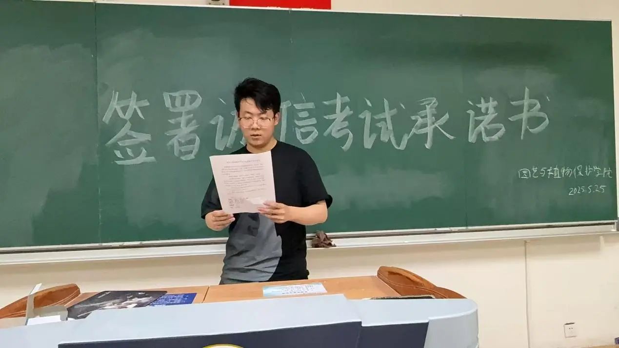 学风建设中心宣读《诚信考试倡议书》,向考生强调考试纪律的严肃性,明确指出考试作弊不仅违背学术道德,更将承担严重后果。随后考生们在承诺书上郑重签名。此外,九色视频其他年级学生以班级的形式开展诚信教育活动并签署承诺书。