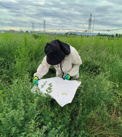 草原所,同学们去到了草原所研究基地。早上,大家乘坐大巴车前往基地,到达所研究的苜蓿地,在指导老师的带领下,大家开始在试验地设置捕虫陷阱,陷阱主要有干陷阱、湿陷阱和黄盘陷阱同时还需要放置黄蓝板来捕捉昆虫,看过老师的示范后同学们纷纷尝试挖了起来,最后的成果也得到了指导老师的认可。另外还有一些同学做了防虫网铺设的工作,刚开始还担心不会做,但是在师兄的帮助下,一起完成了捕虫网的铺设。与此同时,大家也会在草原所的养虫室喂养虫子,为更好的完成实验打下良好的基础。