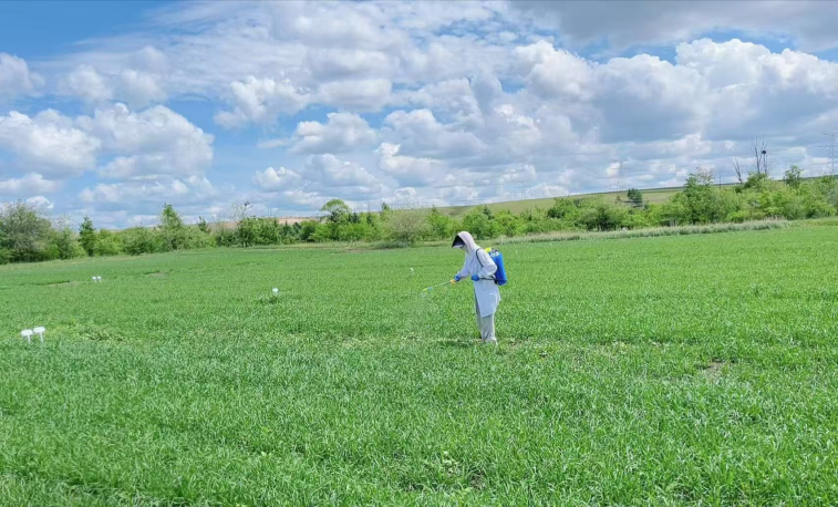 队员们还参与了大田实验,体验了喷药工作,对田间操作的严谨性有了全新认知。有队员不禁感叹:“喷药不是简单的‘按流程操作’,而是与土地、气候、作物对话的过程。”配药时,大家更深刻体会到“差之毫厘,谬以千里”。这段喷药经历让同学们懂得,田间操作没有“小事”——每一个步骤的严谨,都是对土地最实在的承诺。