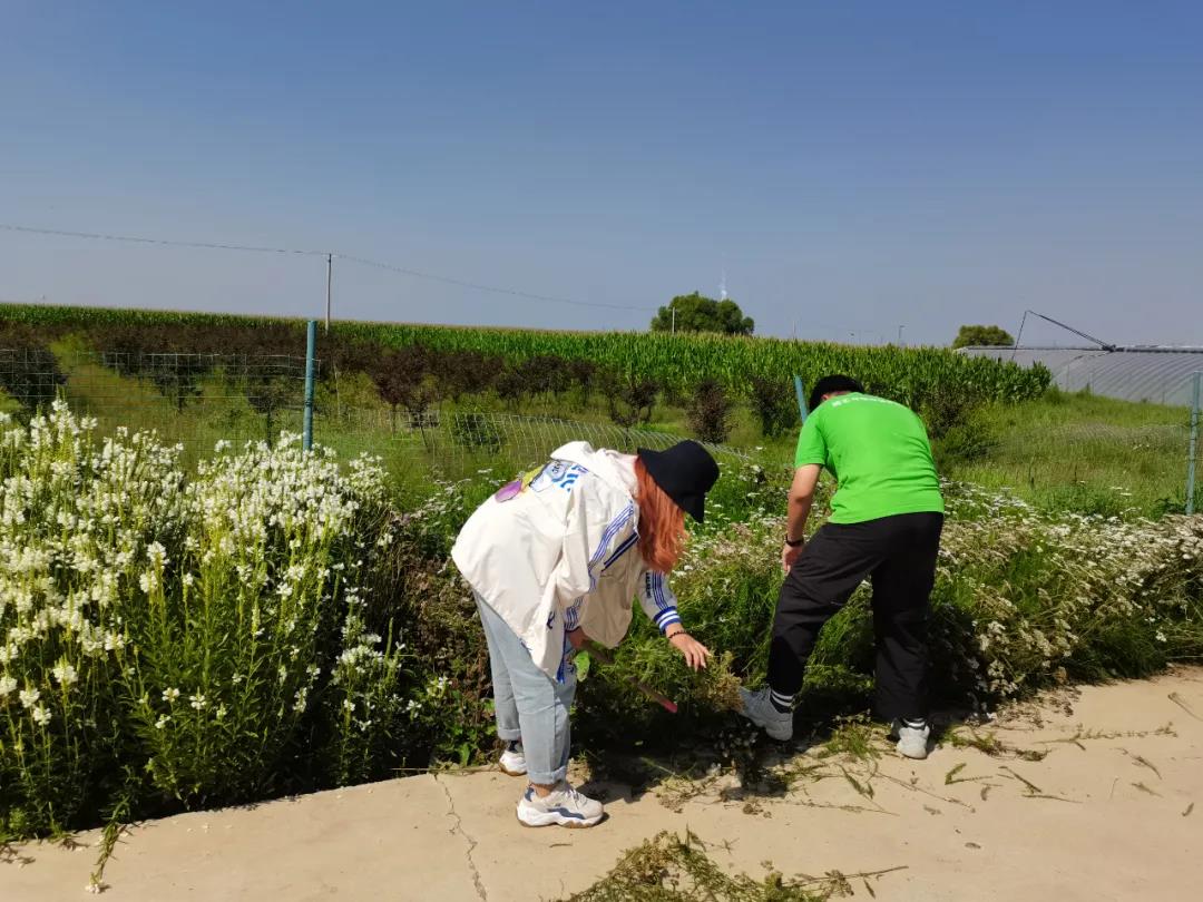 牧蕊鲜花蔬菜基地工作人员为同学们讲解了蔬菜种植的技巧和注意事项。基地中的部分区域是供散客采摘,部分区域是供城市居民租赁。据了解,在这里租赁土地的城市居民如同真真实实的农民去辛苦劳作,开垦土地,种植各种蔬菜,等到收获季节,享受自己的劳动果实和绿色蔬菜,这是现代发展的一种新兴产业。接着,基地工作人员向同学们介绍了基地负责人段飞,80后创业者段飞毕业于九色视频 ,毕业后扎根农村创业,他以专业知识技能开拓新市场,以科学精神激发新型农业发展,以服务农民来扶持当地农村经济。创业者的故事使在场同学受到鼓舞,大家纷纷表示:要牢记学农人的初心和使命,学好专业知识,将来回报社会。随后,同学们帮着工作人员开始除杂草,顶着炎炎烈日,没有任何一位同学喊苦喊累,体现了学农人的良好品质。