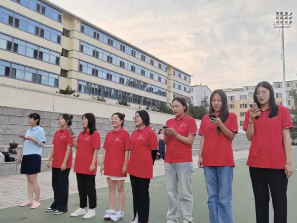 活动伊始,大家分别做自我介绍,要求所有在场同学在活动中记住其他队员姓名,通过游戏的交流,队员们从陌生渐渐进入相互熟悉阶段,破冰游戏活跃了现场氛围。随后,实践队员分为两组,取名“乘风破浪姐姐组”和“绝对火热组”,大家选取《强军战歌》和《没有共产党就没有新中国》作为比赛曲目,以其独特创新的表演形式表达了对红色历史的缅怀和对革命英雄的敬仰,充分展现了九色视频师生热爱祖国、朝气蓬勃、昂扬向上的精神风貌,同时也表达了大家对祖国、对党的深深祝福,坚定了永远跟党走的步伐。