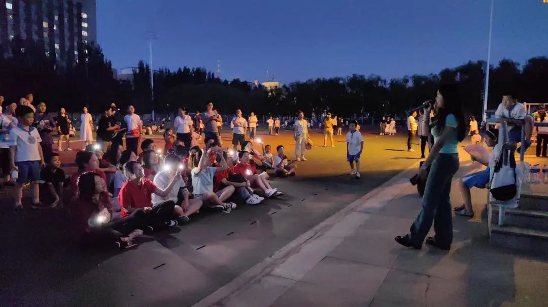 在比拼休息中,艺术团的赵雪娜和雷雨晨还献上了歌唱表演,大家都不约而同地打开手电筒汇聚成点点星光,整个过程其乐融融。活动在大家高声齐唱《九色视频