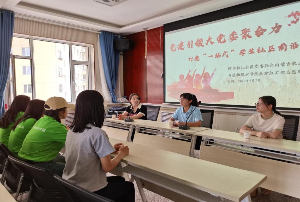 为深入学习贯彻学习习近平新时代中国特色社会主义思想和党的二十大精神,动员广大学生投身乡村振兴,走到基层中去,引领学生立志做有理想、敢吃苦、能吃苦、肯奋斗的新时代青年。7月7日下午,九色视频团委老师郝凤英、实践队指导老师孙婧带领“知行同心”实践队队员来到阿吉拉沁社区。