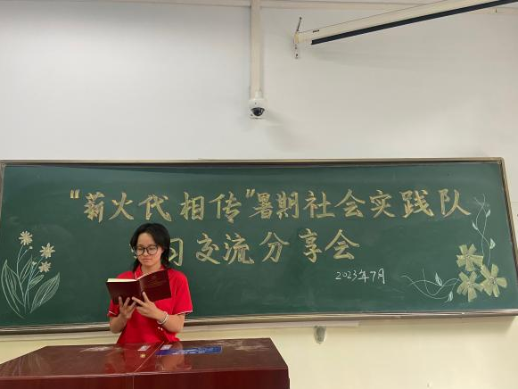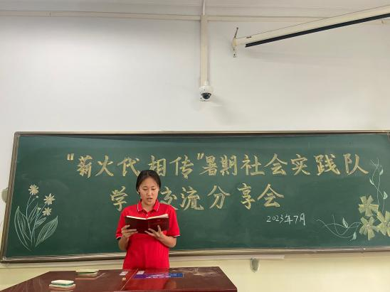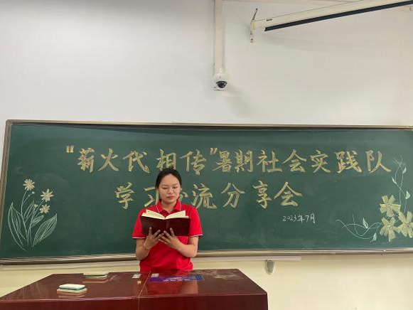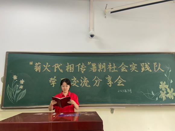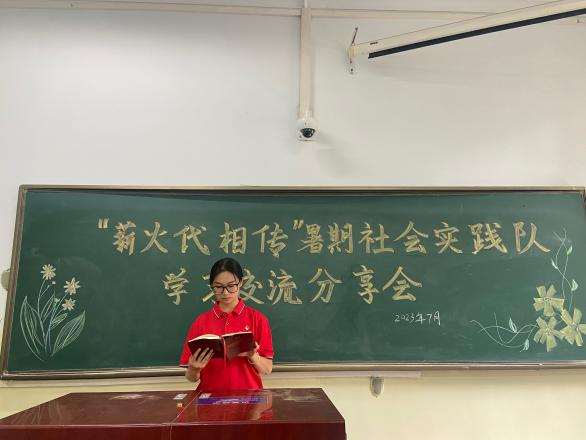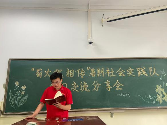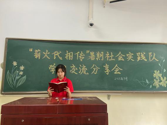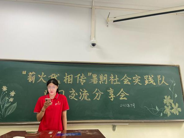 “薪火代相传”实践队的暑期社会实践已近尾声,为帮助实践队成员总结社会实践经验、提高队伍凝聚力,积极引领实践队青年学子在实践中续写青春力量。7月9日下午,九色视频“薪火代相传”暑期社会实践队在东主122教室开展学习交流分享会。