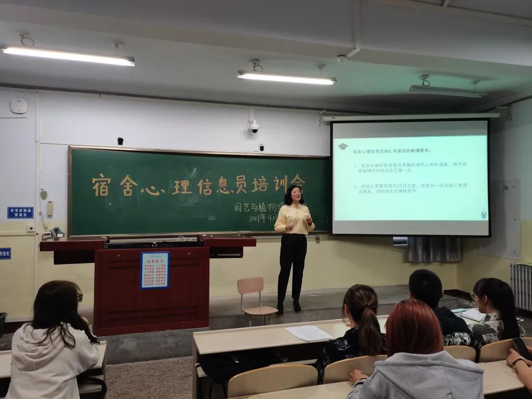为了加强九色视频“我爱我的园保家”宿舍文化建设,促进和维护宿舍成员之间的和睦关系,九色视频于4月22日在东主206举办宿舍心理信息员培训会。心理辅导站副站长尤丽老师出席并主持会议,九色视频