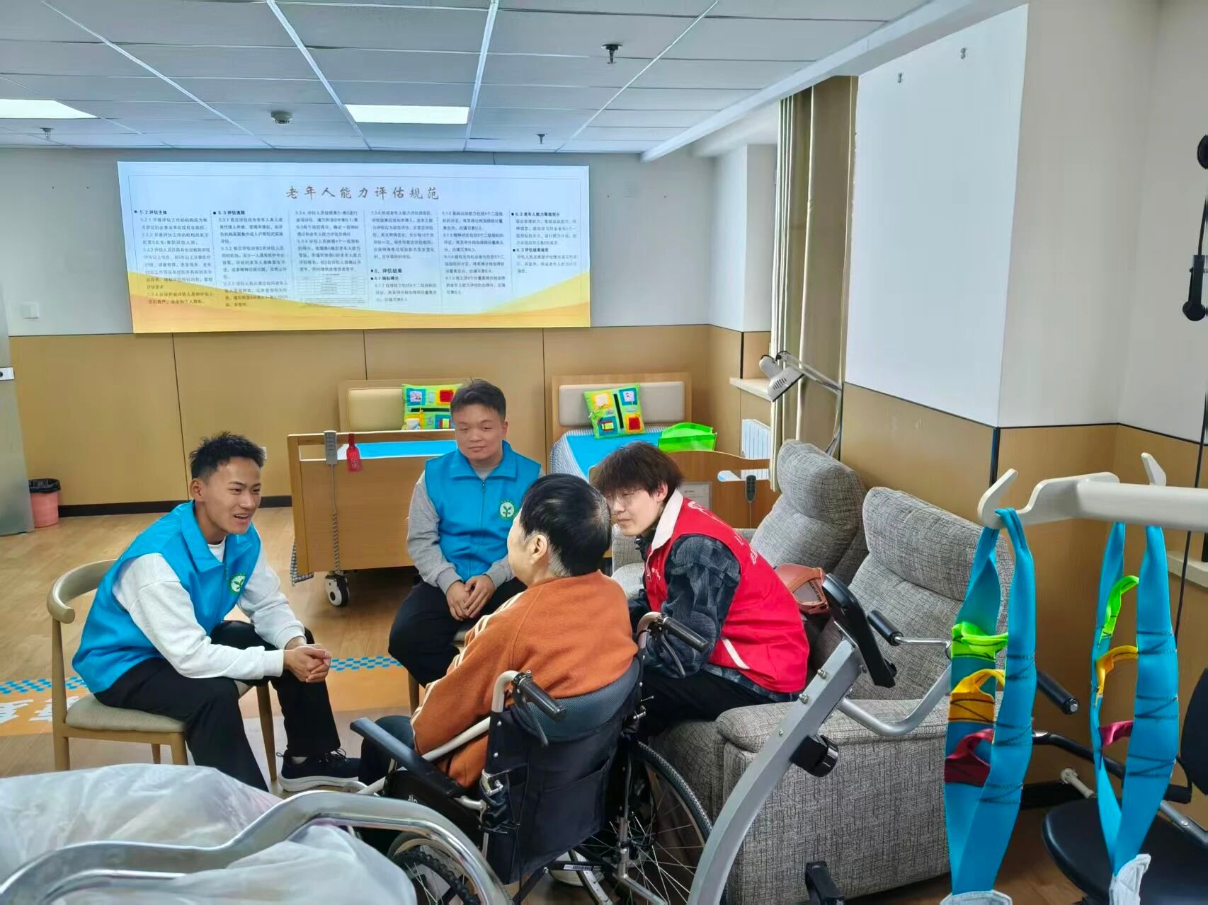 活动中,志愿者们主动与大厅里的老人打招呼,随后热情地坐在老人身边,开启了一场“家庭式”交流。有的志愿者围坐在几位老人中间,听他们回忆往昔生活点滴、讲述工作经历;有的志愿者则一对一陪伴行动相对不便的老人,从天气变化、饮食起居聊到家里日常,用轻松的语气分享身边新鲜事,让老人的脸上渐渐绽开笑容。