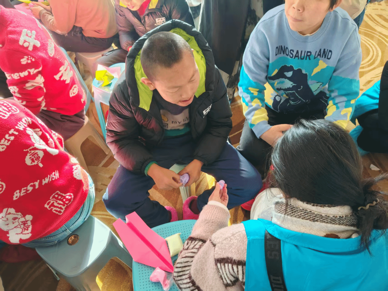 活动当天,志愿者们早早来到康复中心,与孩子们围坐在一起,通过互动游戏、手工制作等形式,拉近彼此距离。志愿者们耐心地引导孩子们参与,用温暖的陪伴和鼓励,让孩子们在轻松愉快的氛围中展现自我、收获快乐。
