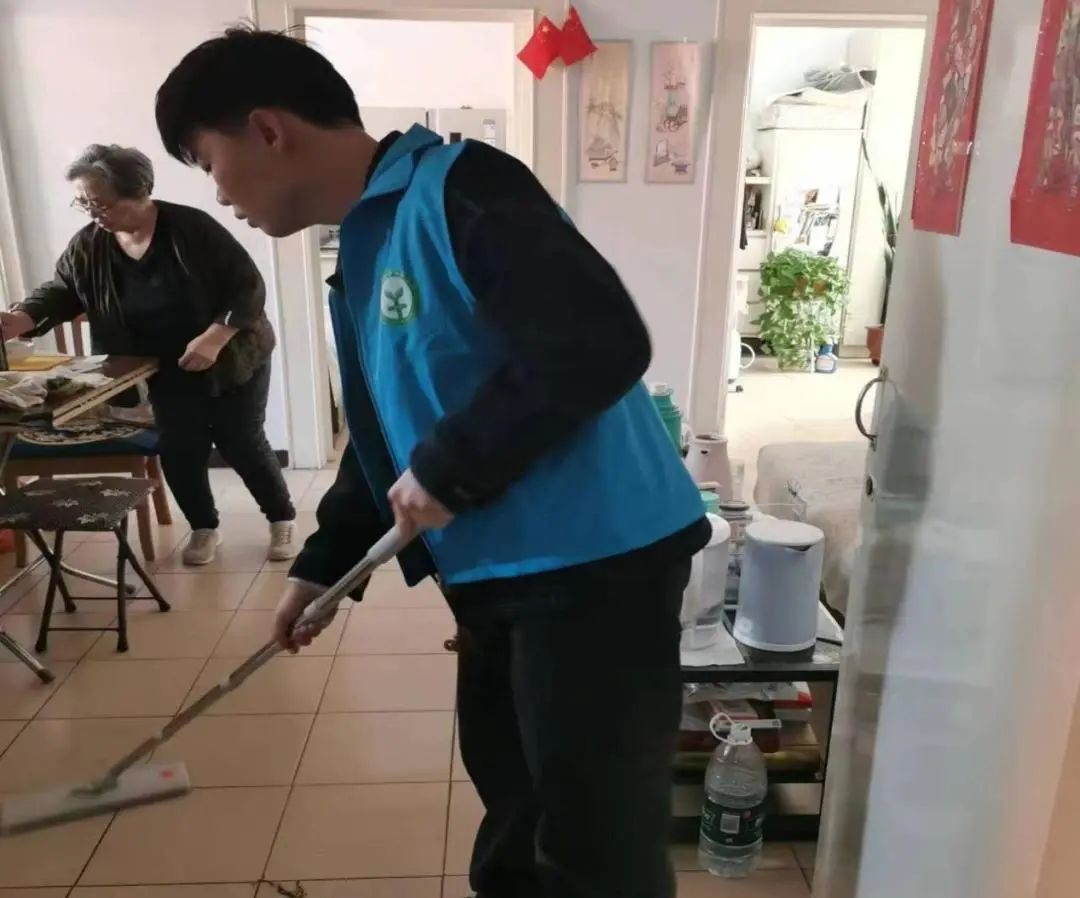 志愿者身穿马甲,探访贫困老人家庭,他们拿着抹布、扫帚等清洁工具,帮贫困家庭老人打扫客厅、厨房、卫生间等卫生死角,收拾零散物品,擦拭门窗。经过志愿者仔细打扫,老人家中焕然一新,窗明几净。在打扫过程中,志愿者与老人深入谈心、交流,询问身体近况并嘱咐老人要注意饮食起居,使他们感受到社区大家庭的温暖。