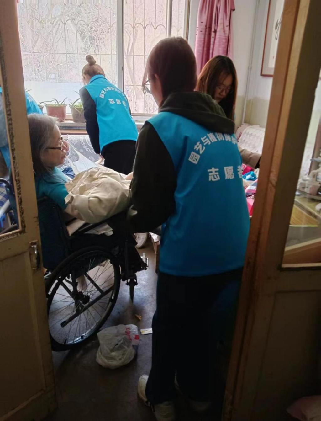 来到叶大姐的家里时,叶大姐热情地招待志愿者们进屋,看到有些志愿者穿着单薄,她细心地嘱托同学们要及时添衣,告诉大家虽然疫情已经过去,但是依旧不能掉以轻心,要做好防护措施。