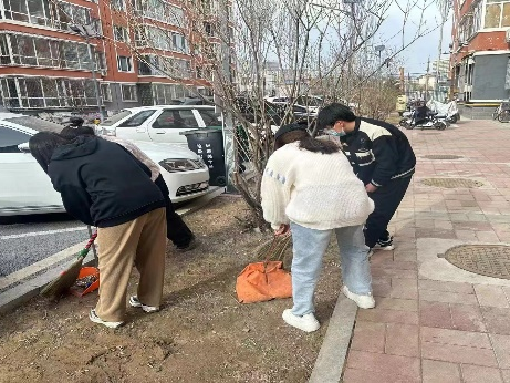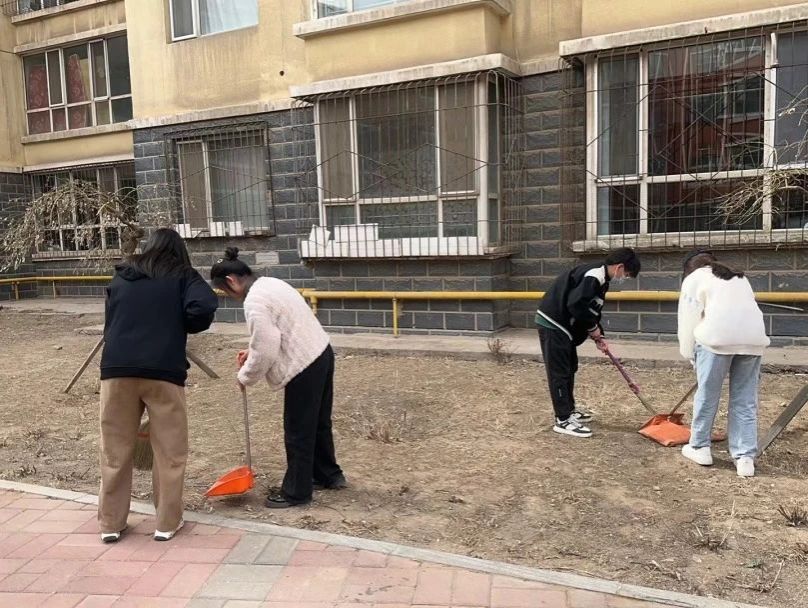 志愿者在团委老师郝凤英的带领下来到呼和浩特市回民区阿吉拉沁社区开展“志愿服务进社区,清洁打扫暖人心”学雷锋志愿服务活动。