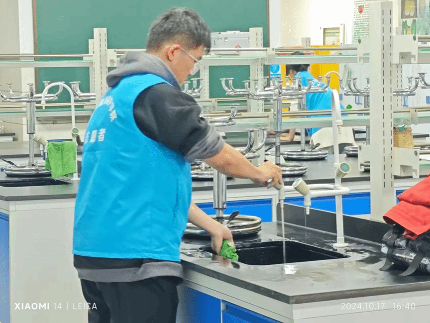 在清扫过程中,志愿者们充分展现了不怕苦、不怕累的精神。他们认真细致地擦拭实验室仪器和会议室桌面,确保表面干净无尘;同时仔细清扫地面,确保整体环境干净整洁。经过一个多小时的努力,原本有些凌乱的实验室变得整齐有序,会议室变得干净明亮,大家看着自己的劳动成果也洋溢着开心的笑容。