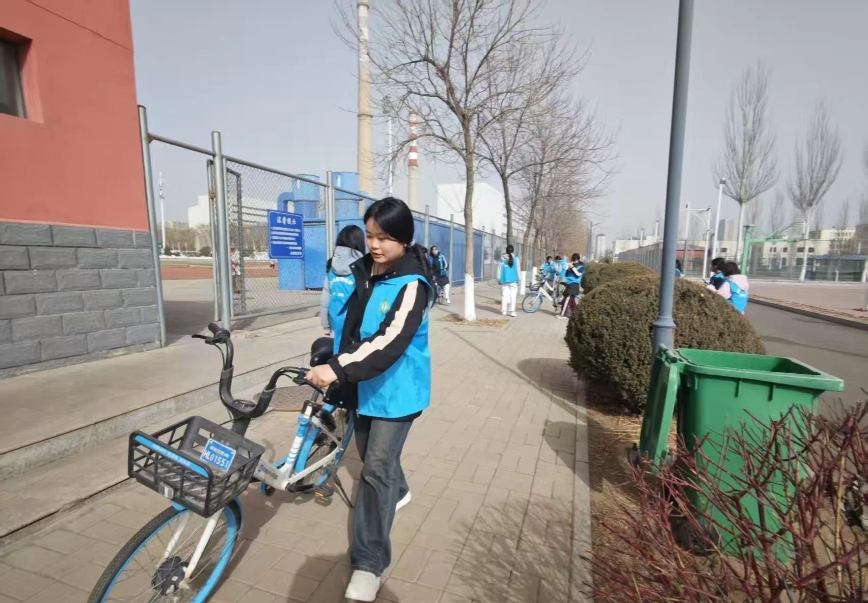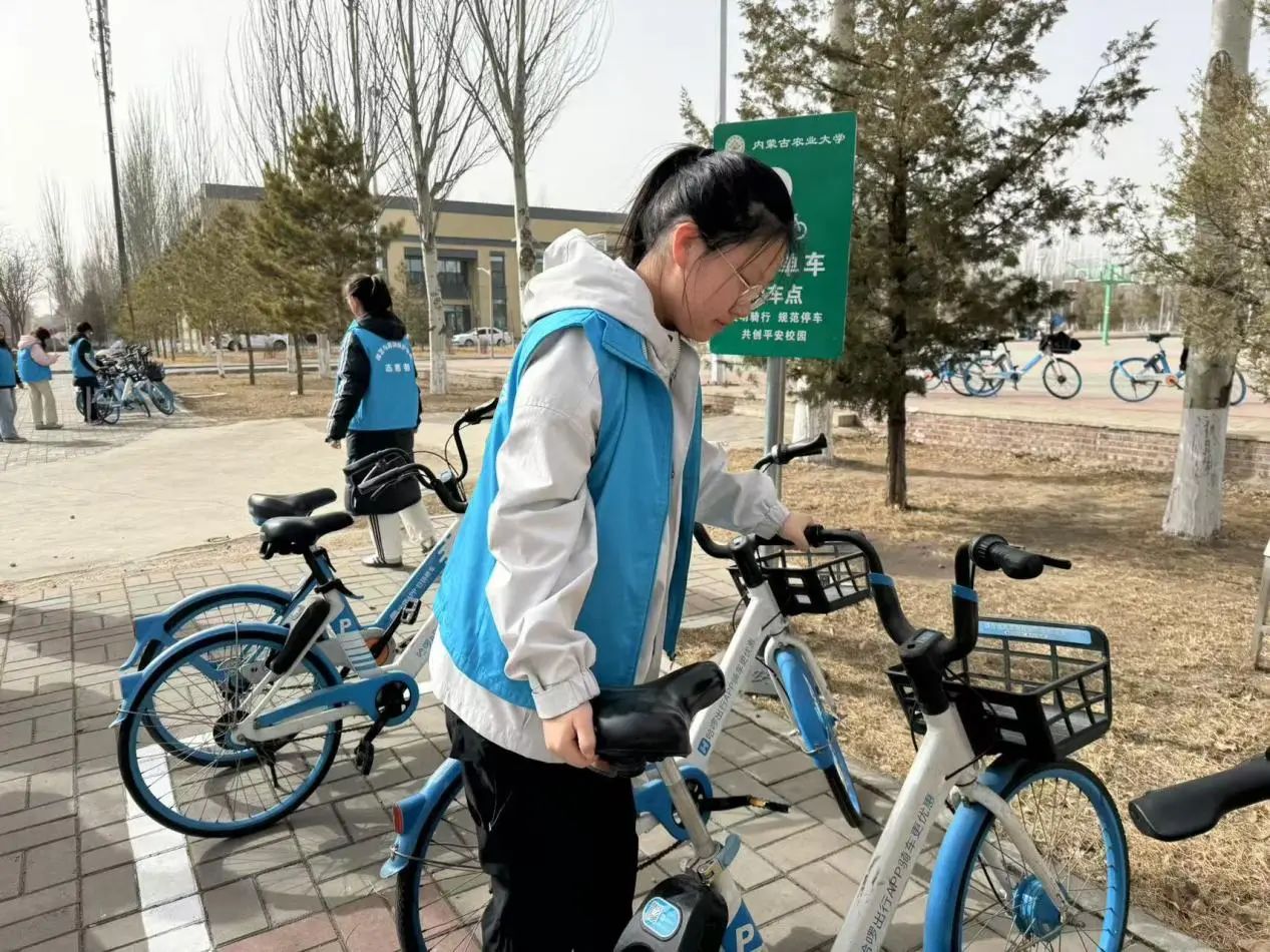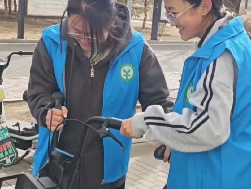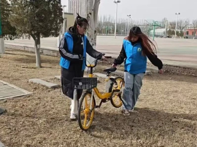 活动伊始,志愿者们早早集合,他们身穿统一服装,迅速投入到工作中。面对校园中杂乱无章的共享单车,志愿者们分工明确,有的负责将车辆从角落、人行道上搬运至指定停放区域,有的则按照品牌、车型进行分类排列。尽管天气有些寒冷,但志愿者们的热情丝毫不减,他们不辞辛劳,穿梭在校园中。