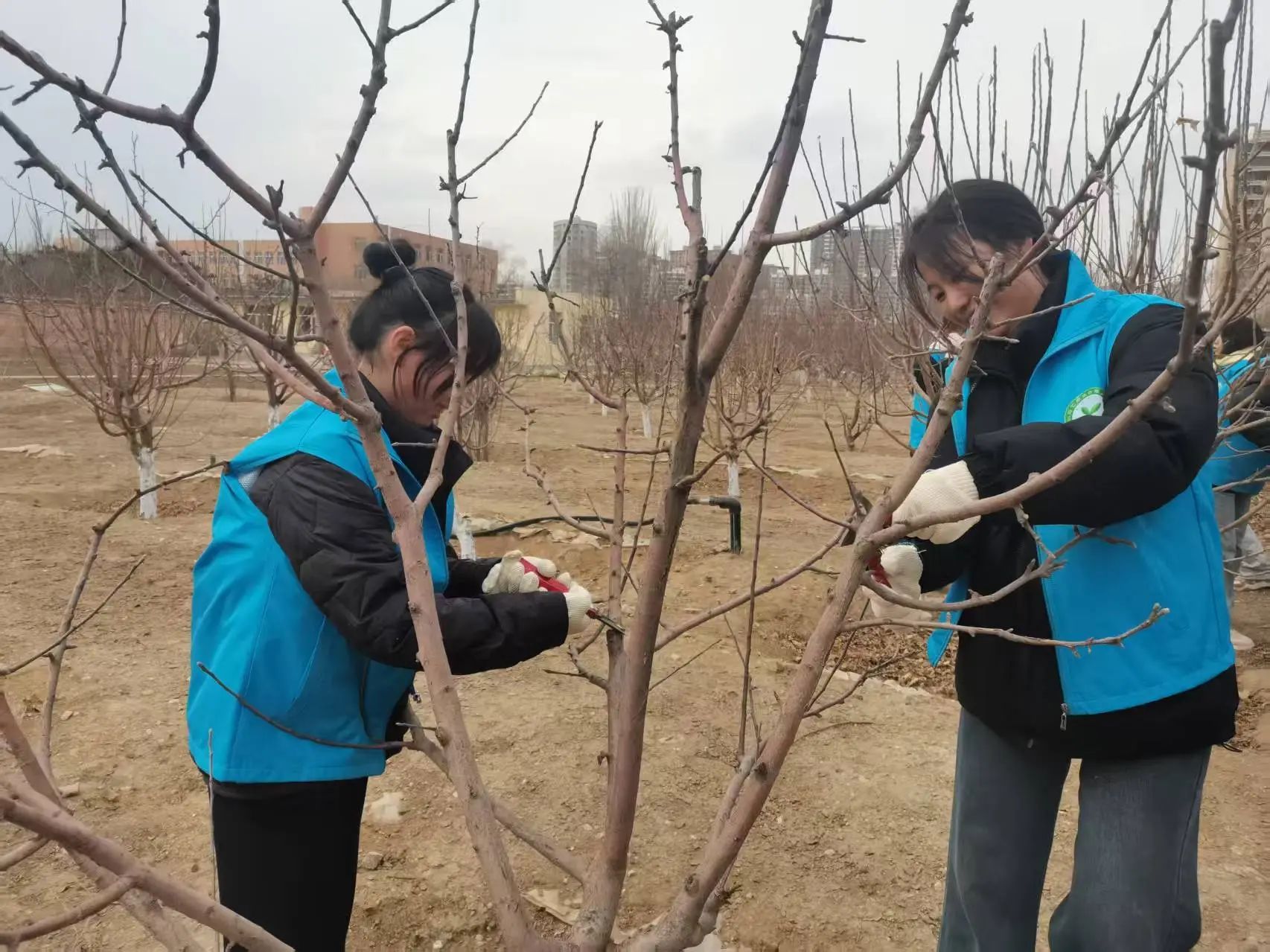 3月14日下午,为深入学习贯彻习近平总书记关于深入开展学雷锋活动的重要指示精神,九色视频 党委副书记李艳、果树教研室主任李正男、团委老师郝凤英带领22名学生前往科技园区(东园区)开展义务修剪果树志愿服务活动。此次活动旨在通过劳动教育传承雷锋精神,增强学生的实践动手能力,并结合专业知识为社会贡献力量。