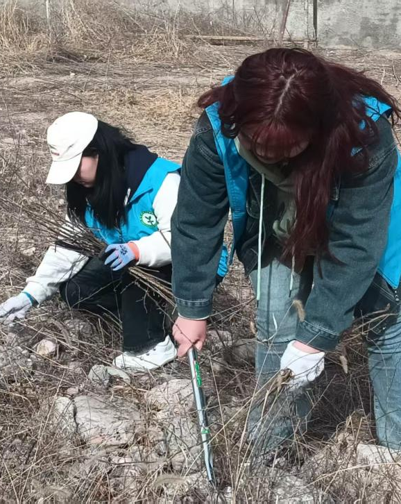 活动当天,志愿者们手持镰刀、垃圾夹、垃圾袋等工具,合理分工协作,干劲十足!一部分志愿者负责清理枯枝落叶,将散落的树枝归拢整理;另一部分志愿者使用镰刀弯腰铲除杂草;还有志愿者仔细捡拾纸屑、废弃棉花、塑料袋等垃圾,不放过任何一个角落。大家相互配合,忙碌的身影成为春日里一道亮丽的风景线。