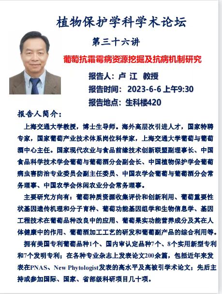 上一条:植物保护学科学术论坛(第三十九讲) 下一条:植物保护学科学术论坛 青年讲坛(第三十一讲)