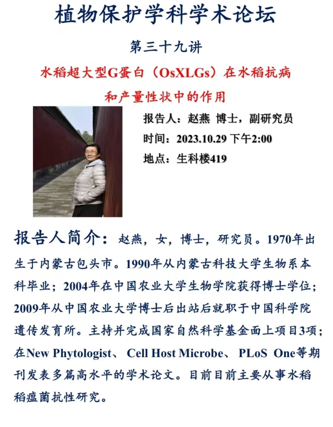 上一条:植物保护学科学术论坛(第四十讲) 下一条:植物保护学科学术论坛(第三十六讲)