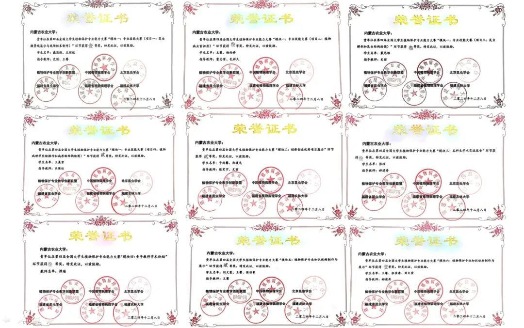 在本届大赛中,我校在9个比赛项目的激烈竞赛中全面开花,成功斩获多项荣誉。其中,在“昆虫微景观展示与现场标本制作”以及“植物保护专业知识动画制作与展示”项目中勇夺一等奖;“创新创业优秀项目展示”“植物病虫害知识竞答”和“植物保护专业知识视频制作与展示”项目荣获二等奖;在“本科生学术交流报告”、“青年教师学术论坛”、“植物病虫害识别”、“昆虫解剖和昆虫结构绘图”项目摘得三等奖。此外,我校还荣获优秀组织奖与团体三等奖。